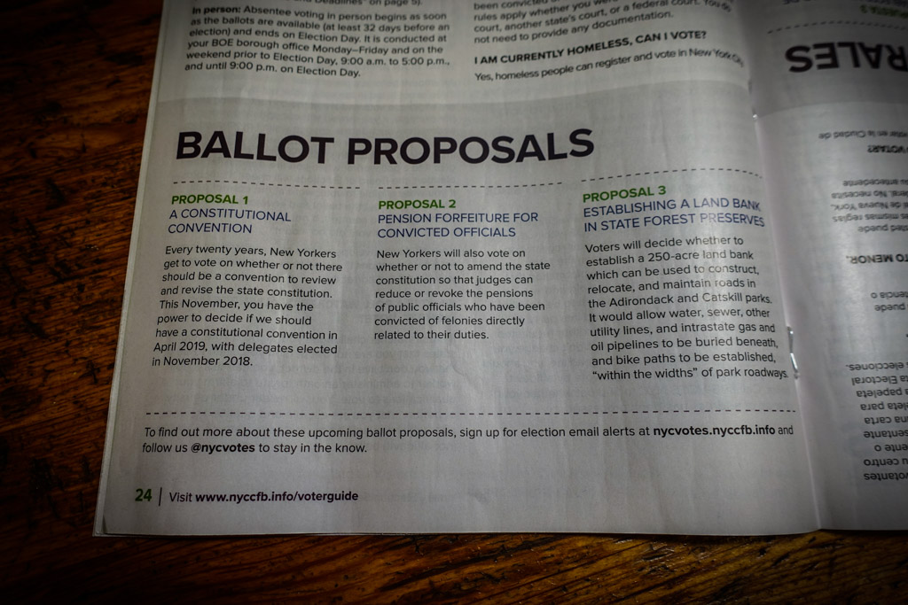 7. Каждые выборы могут нести с собой мини-референдум: кроме кандидатов на различные политические посты, нам предстоит голосовать по трём вопросам. Например один из них - устроить пересмотр всей конституции штата Нью Йорк - такое предлагается сделать каждые 20 лет. Но, насколько я понимаю, на праймериз этих вопросов не будет.