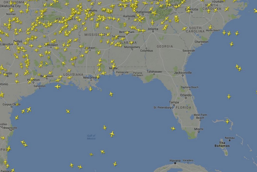 Сайт FlightRadar24 отслеживает самолёты по всему миру. Они показывают иконки самолётов на карте, позволяя пользователю наблюдать за потоками воздушных судов в любой точке на планете. Каждый самолёт изображён на карте с помощью жёлтой иконки, причём её силуэт и направление будут более-менее соответствовать настоящим. На прошлой неделе, рано утром девятого сентября, сайт показал в небе над центральной Флоридой любопытную вереницу самолётов: