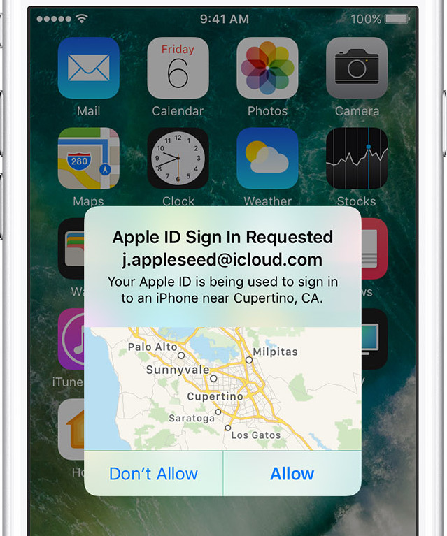 "Ваше Apple ID пытаются использовать, для входа в акаунт через Айфон возле Купертино, штат Калифорния." - вот что написано на картинке выше.