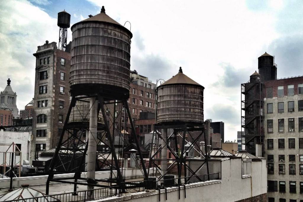 Посмотрите на эту фотографию. Многие из вас сразу узнают классические очертания этой конструкции на крыше: это традиционная для Нью Йорка водонапорная башня. Они довольно привлекательны своими старомодными формами, из-за чего часто фигурируют в фотографиях и отчётах приезжих, как эдакие открытки из давно ушедшей эпохи, случайно дожившие до наших дней.