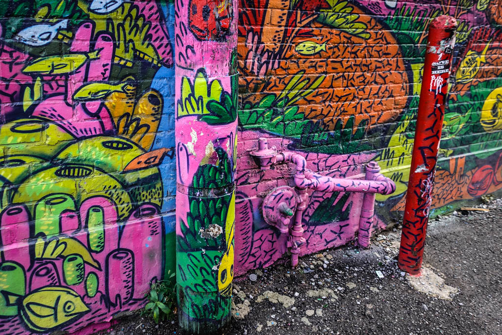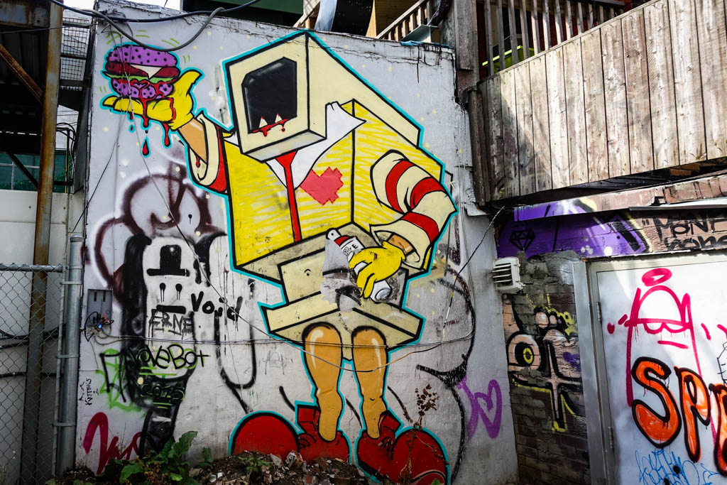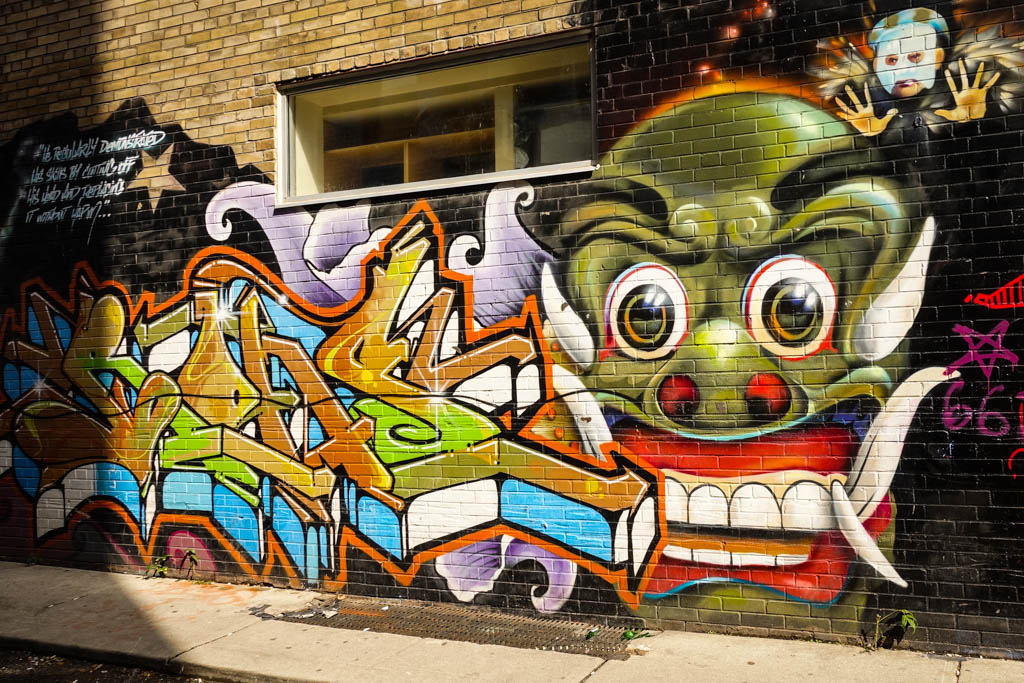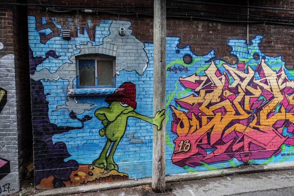 Сколько я ездил по разным странам мира, не разу не доводилось мне попадать в столь разрисованный город, как Торонто. В этом канадском городе каждая возможная стенка закрашена каким-нибудь местным художником граффити. Стрит-арт в Торонто очень быстро захватывает любую свободную поверхность. И даже несвободные уже пространства быстро меняются, как сказали мне местные. Творцов много, и им нужно самовыражаться.