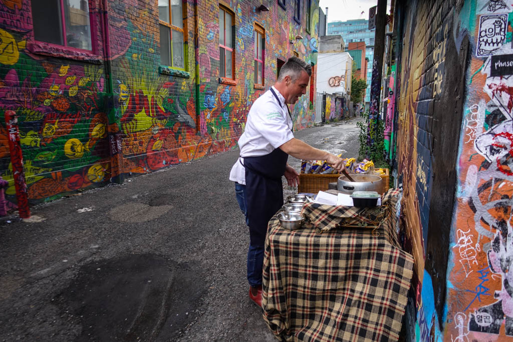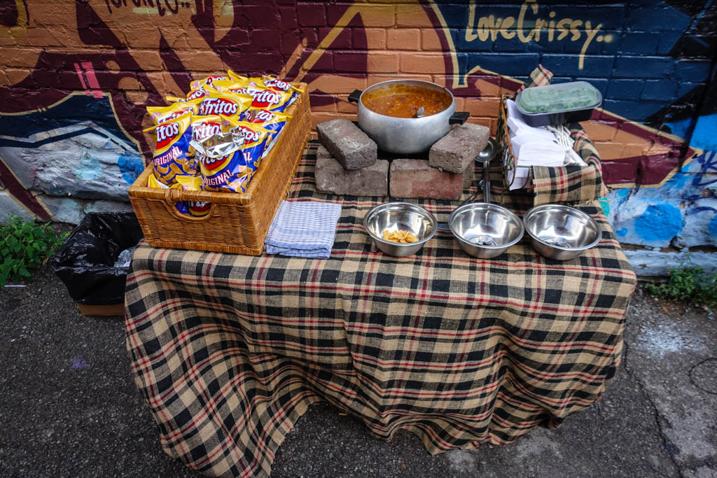 15. Мясное чили разливается прямо в пакеты с чипсами - они становятся как сухарики в супе. Повар сообщил нам, что ожидает группу ценителей стрит-арта с минуты на минуту,