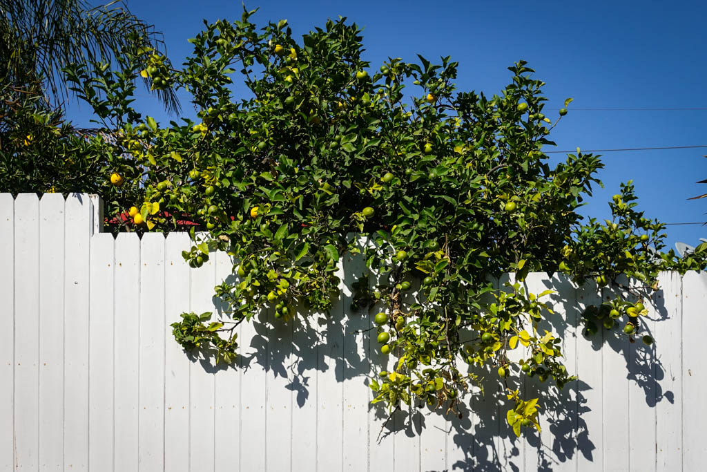 14. Мне рассказали, что в Лос Анджелесе, если фрукты свешиваются с территории дома над улицей, то считается, что прохожие могут их рвать и есть. Интересно, как относятся к этому хозяева.