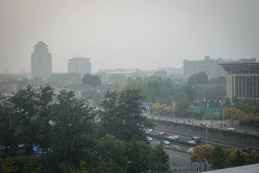 4. По случаю такого события власти намеревались разогнать тучи, чтобы над Пекином в кой веки раскрылось ясное голубое небо, которое фигурирует на всех китайских фото-обоях. Но, очевидно что-то пошло не так, и всё небо было затянуто густыми облаками, а мало-мальски далёкие здания растворялись в белёсой дымке смога.