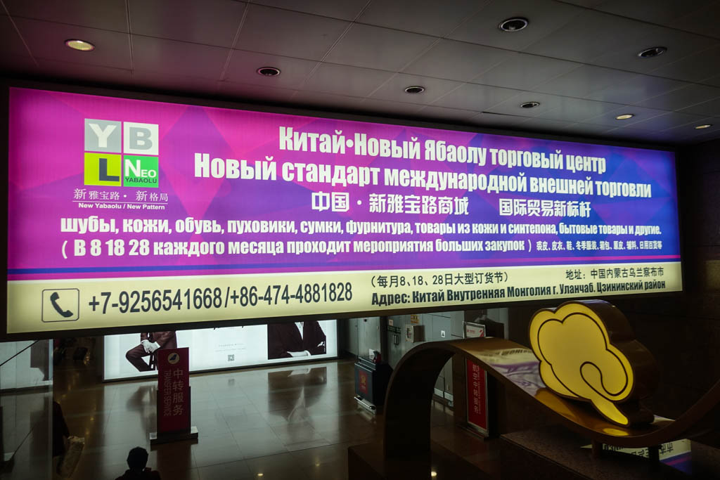 2. А над спуском к багажу висит вот такая реклама, явно нацеленная наших бывших соотечественников. Уверен, Ябаолу торговый центр получит теперь немало отличных клиентов.