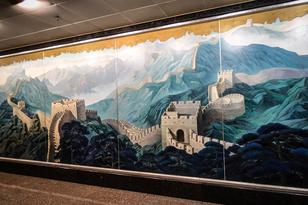 1. Китайцы встречают туристов с размахом - уже на паспортном контроле начинаются красивые туристические виды. Вернее один - тот, что самый известный среди туристов мира, Великая Китайская Стена.