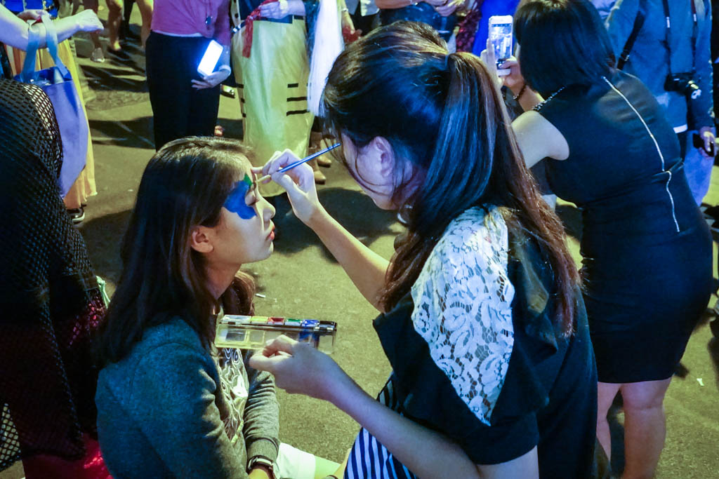 4. Много народу было с загриммироваными лицами. У кого это была просто краска, а некоторые заморочились с разного рода шрамами, ранами, и т.д.