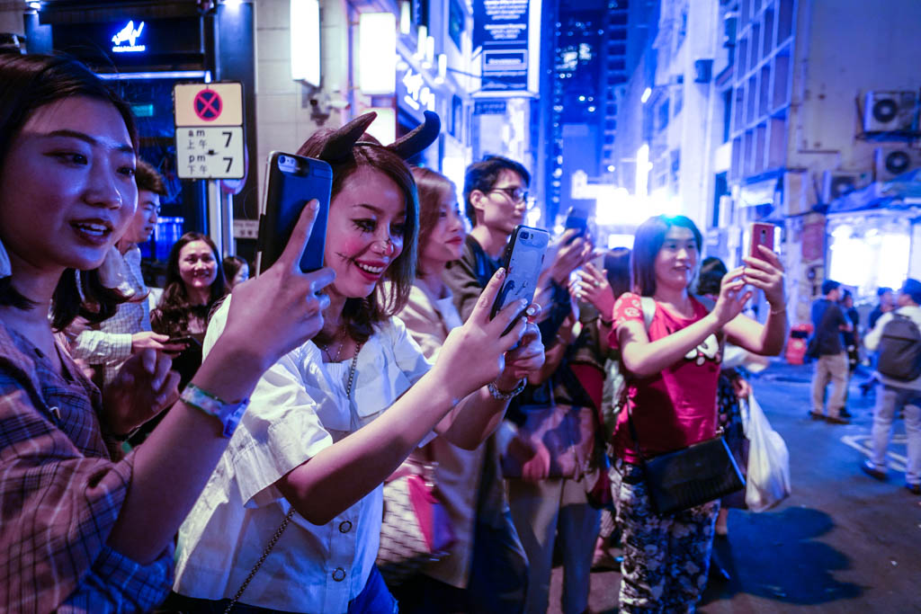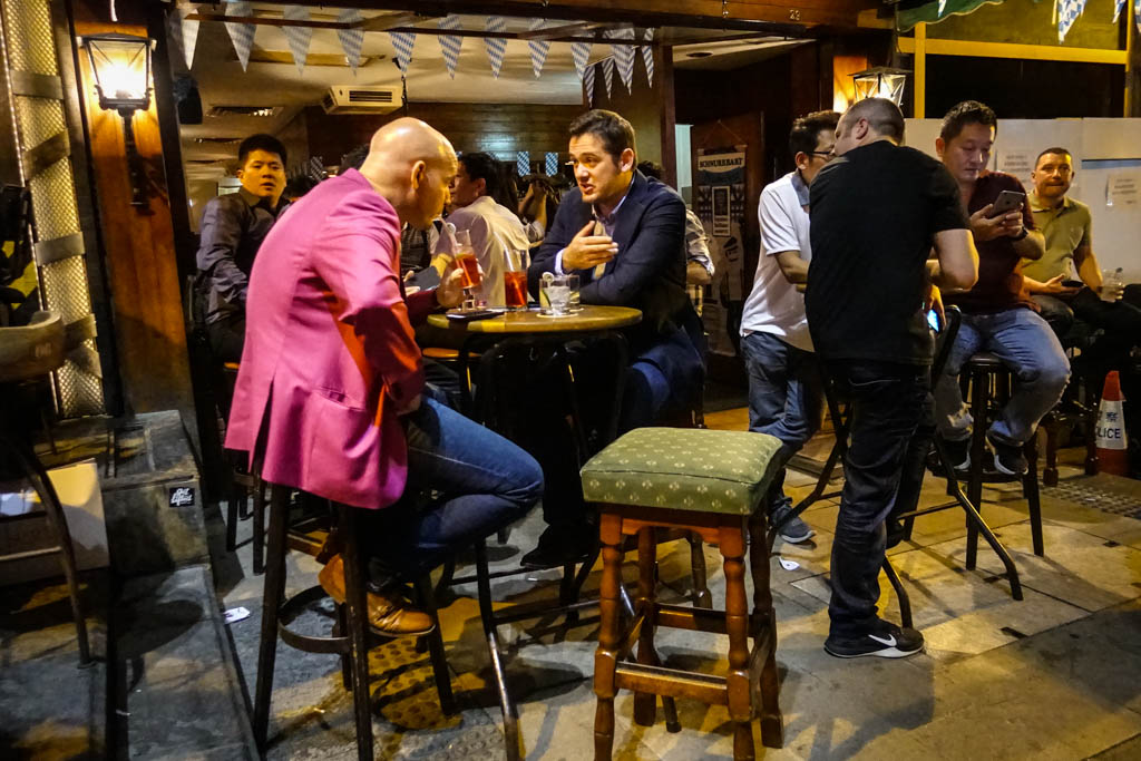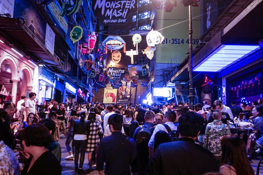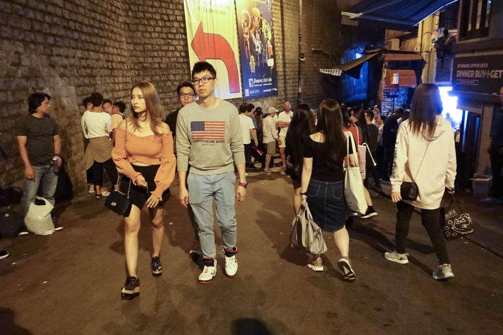 1. Вечером я решил наведаться в тусовочный район Lan Kwai Fong - здесь на паре кварталов расположено множество злачных заведений, и по выходным тут оживлённо гуляет народ. В этот раз тоже были толпы.