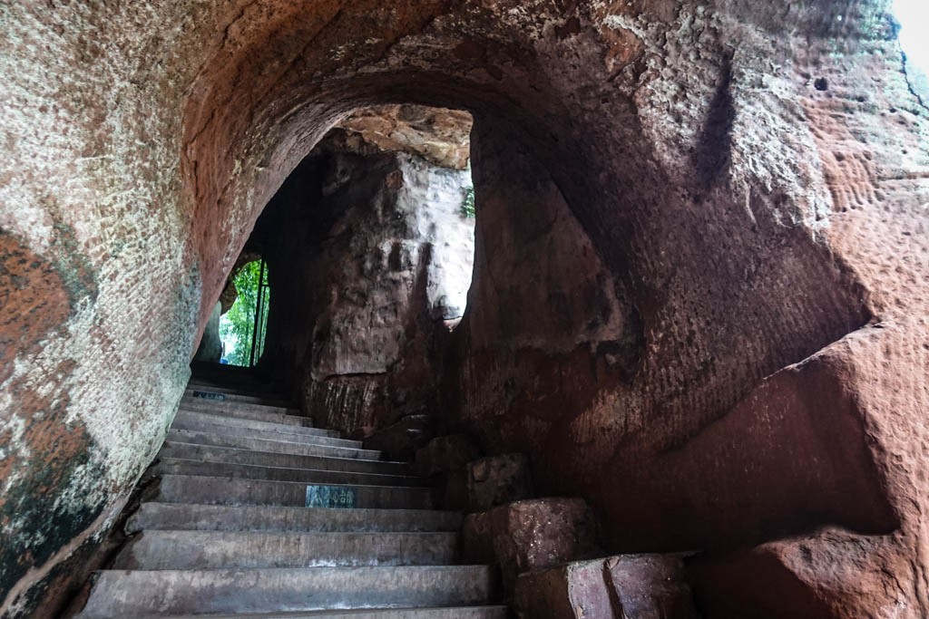 9. Но вернёмся к Будде. Самый интересный момент достопримечательности в том, что можно спуститься вниз по отвесной стене рядом с сидящим гигантом. То есть, мы начали с уровня его головы, и можем слезть по лестницам вниз, прямо к подножию монумента.