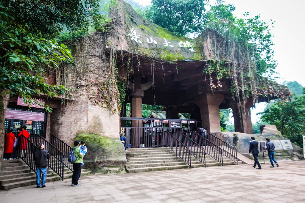 1. Город Лэшань, где находится эта достопримечательность, расположен где-то в часе езды от Чэнду, где туристы могут познакомиться с большими пандами. Фигуру огромного Будды китайцы начали высекать в горе в начале VIII века нашей эры, во время династии Тан. Работы продолжались 90 лет! Знаменитый памятник древности находится недалеко от центра города - вот как выглядит вход на территорию.
