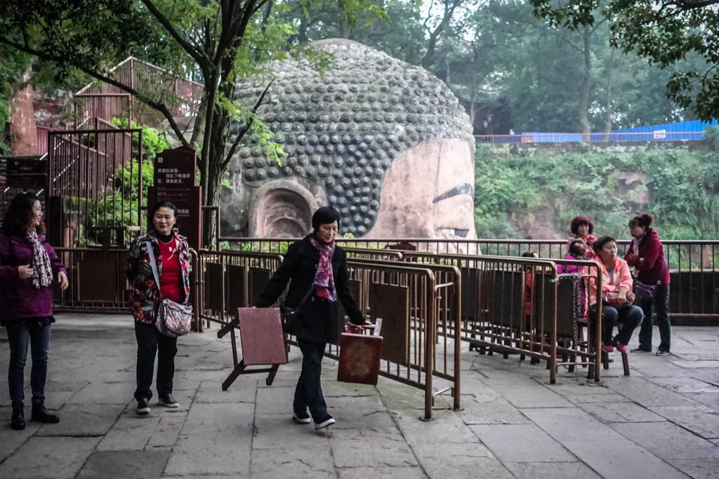 2. Гигантский Будда - часть наследия ЮНЕСКО, а так же удостоен высшего разряда "AAAAA" китайским министерством туризма. При этом, удивительно, что здесь нет огромной парковки размером с три стадиона, нет широкого бульвара длиной в километр, и прочих прелестей китайских достопримечательностей высшего класса. Покупаешь билет за 90 юаней, и входишь себе без особого пафоса.