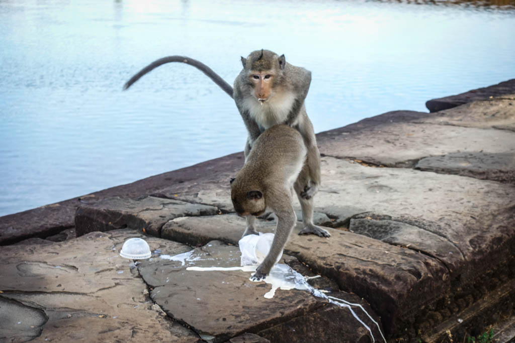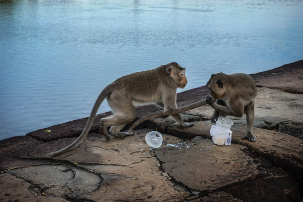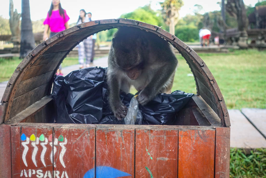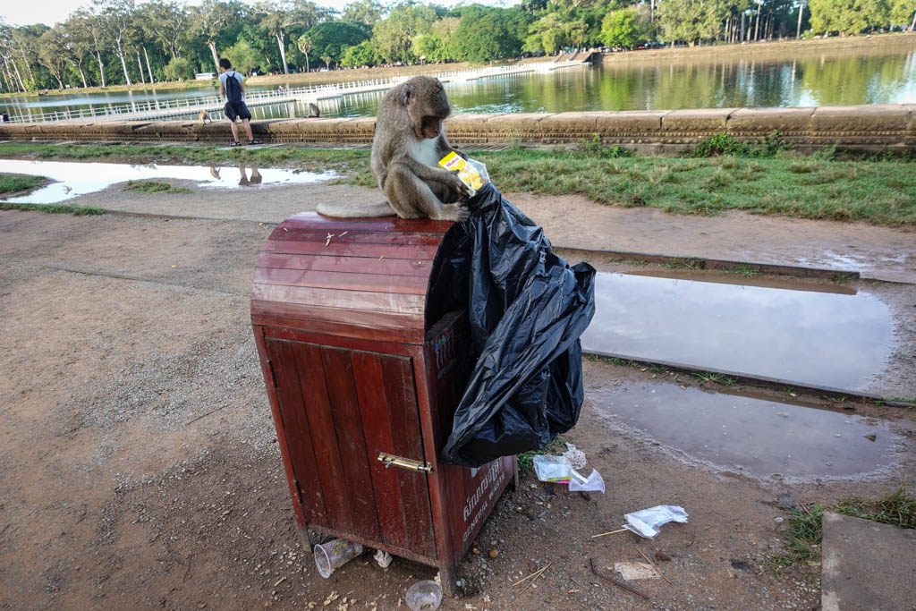 9. Правда в своего рода уме им не откажешь. Например, в Ангкор Вате они навострились копошиться в мусорных баках. Причём, чтобы не залезать в эти урны целиком, они орудуют мусорным мешком, как будто это рыболовная сеть.