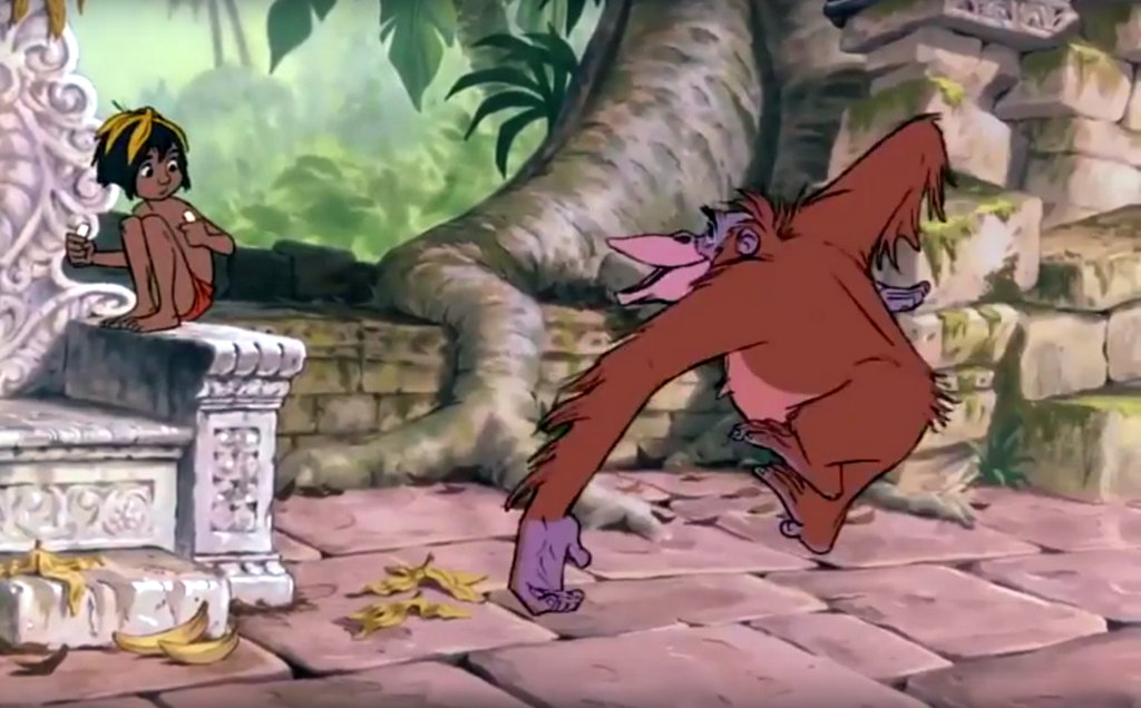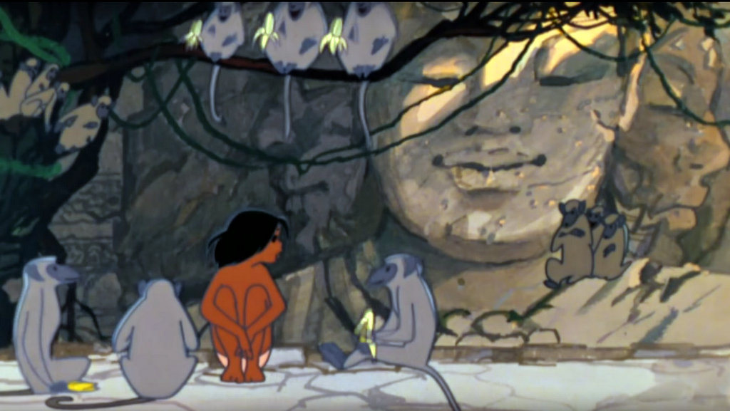 3. Диснеевский мультфильм, "Книга Джунглей" сделан на основе того же материала, и вышел в том же 1967 году, что и первая серия русского Маугли (это чистое совпадение). Американский мультик намного более детский, нежели работа Союзмультфильма, однако в нём очень хорошо прорисованы задники, что позволяет лучше разглядеть место, где обитают бандерлоги: