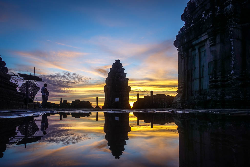 11. Ну если не видны башни главного храма, можно снять отрожение башен самого Пном Бакенга. Благо, такое отражение можно сфотографировать в любой лужице, если подойти достаточно близко.