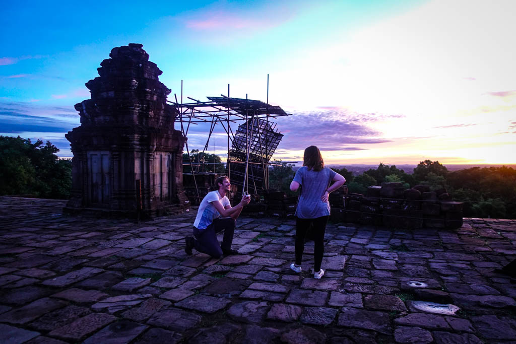14. Пара заняла места, гид поднял мыльницу и приготовился снимать. И тут парень достал из кармана коробочку, и встал на одно колено. Он прямо тут на рассвете в Камбодже делал предложение своей девушке! При этом он ничего не говорил, а просто широко улыбался и смотрел на неё.