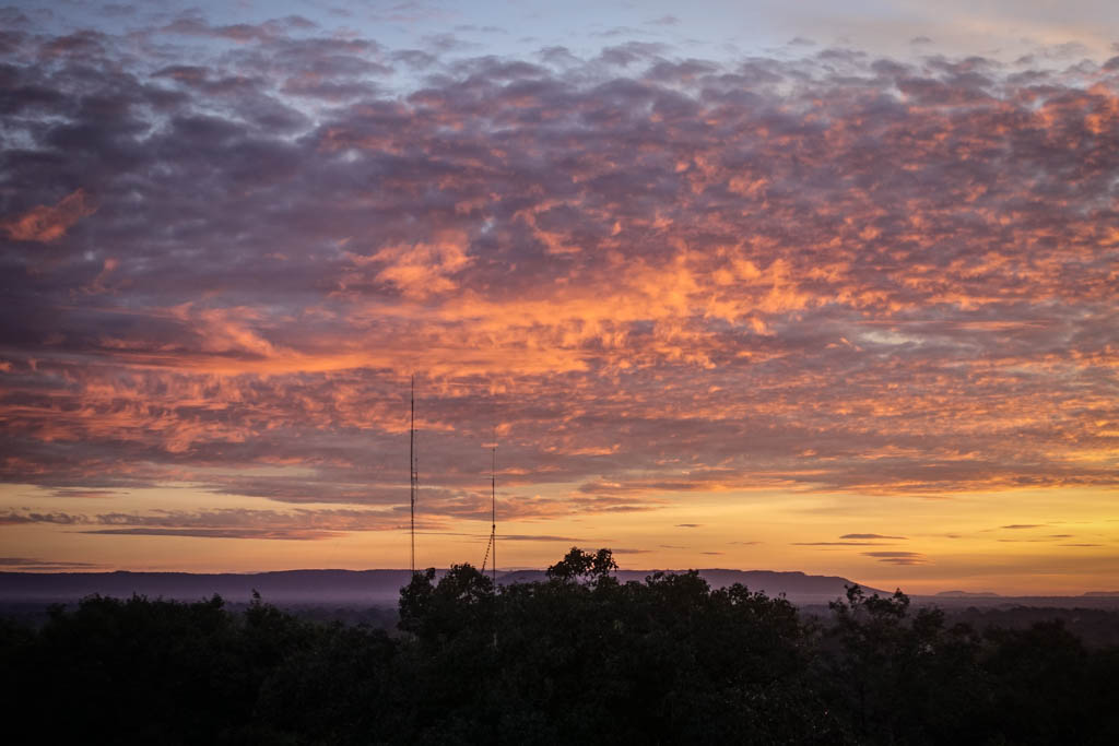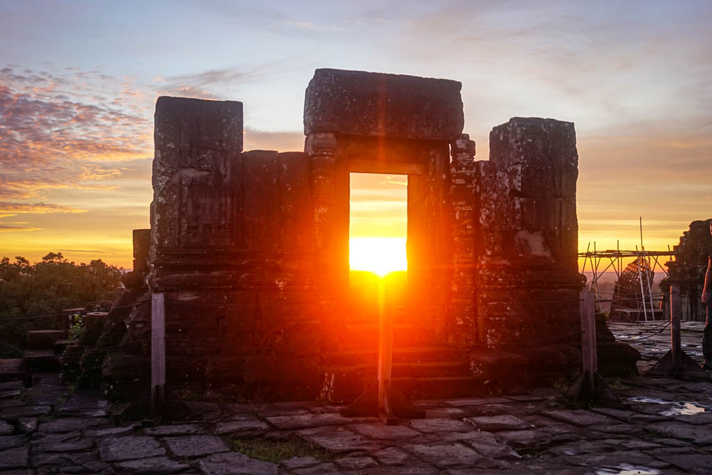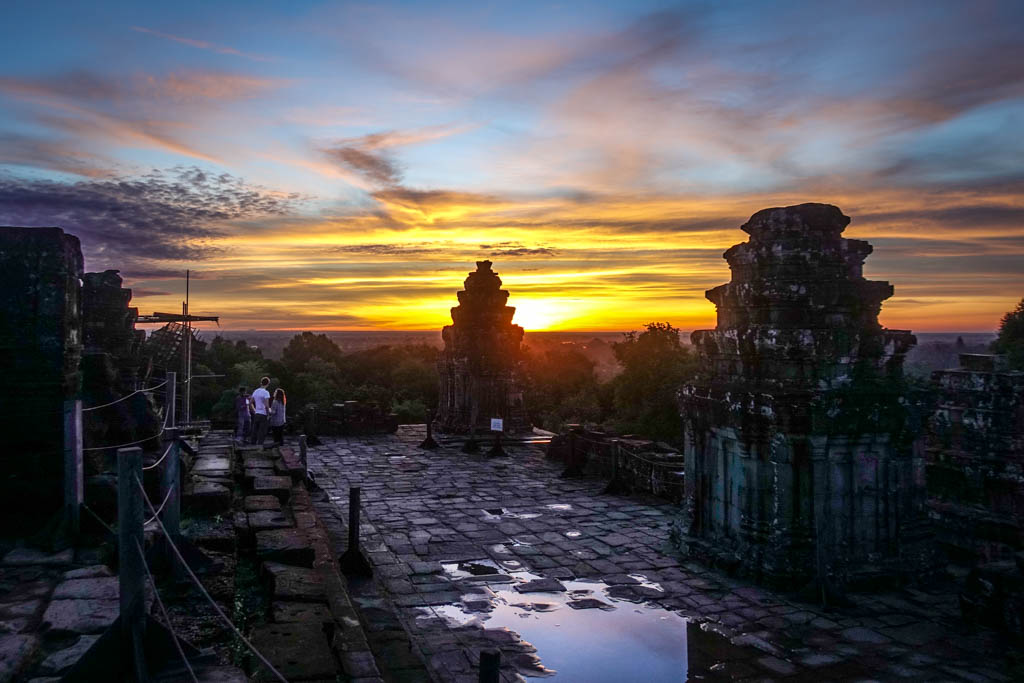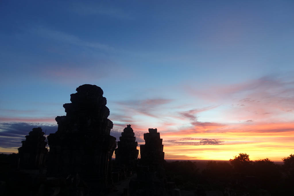 17. И вот они, первые лучи солнца над Пном Бакенгом. Это конечно не отражение Ангкор Вата, но надо довольствоваться тем, что есть.