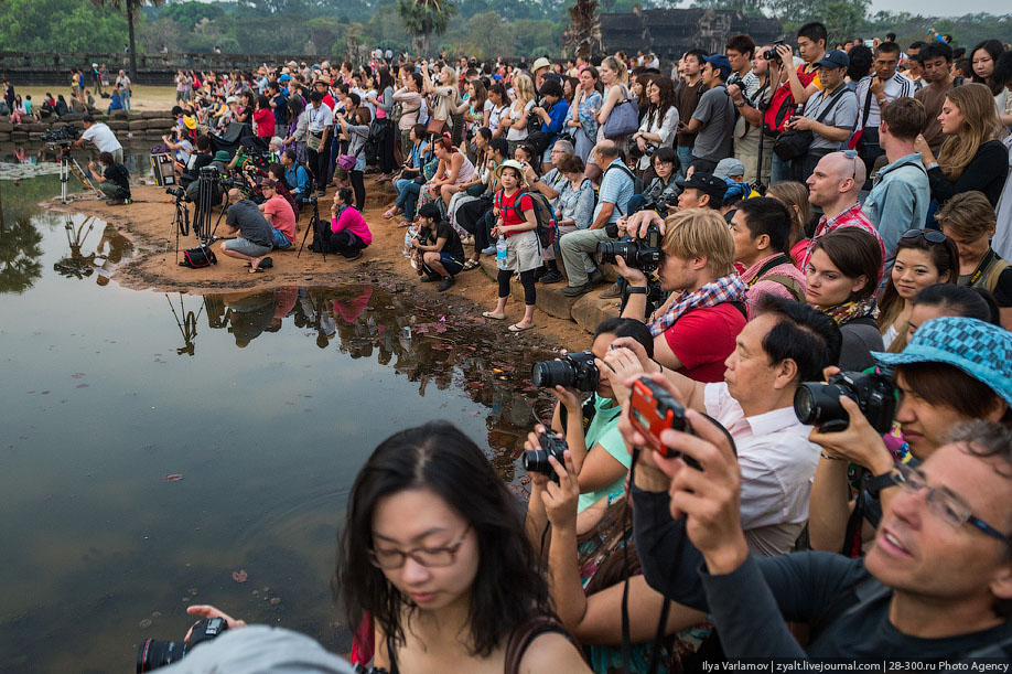 21. Возле отражающих "бассейнов" ряды рассветных фотографов к этому времени изрядно поредели, а те, что остались, уже фотографировали не храм, а друг-друга.