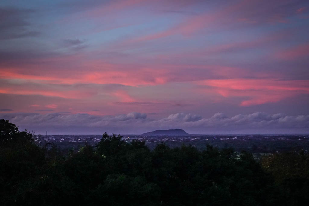 9. Причём был хороший обзор на все 360 градусов. Сзади виднелись огни Сиемреапа, а облака переливались нежно-лиловым цветом.