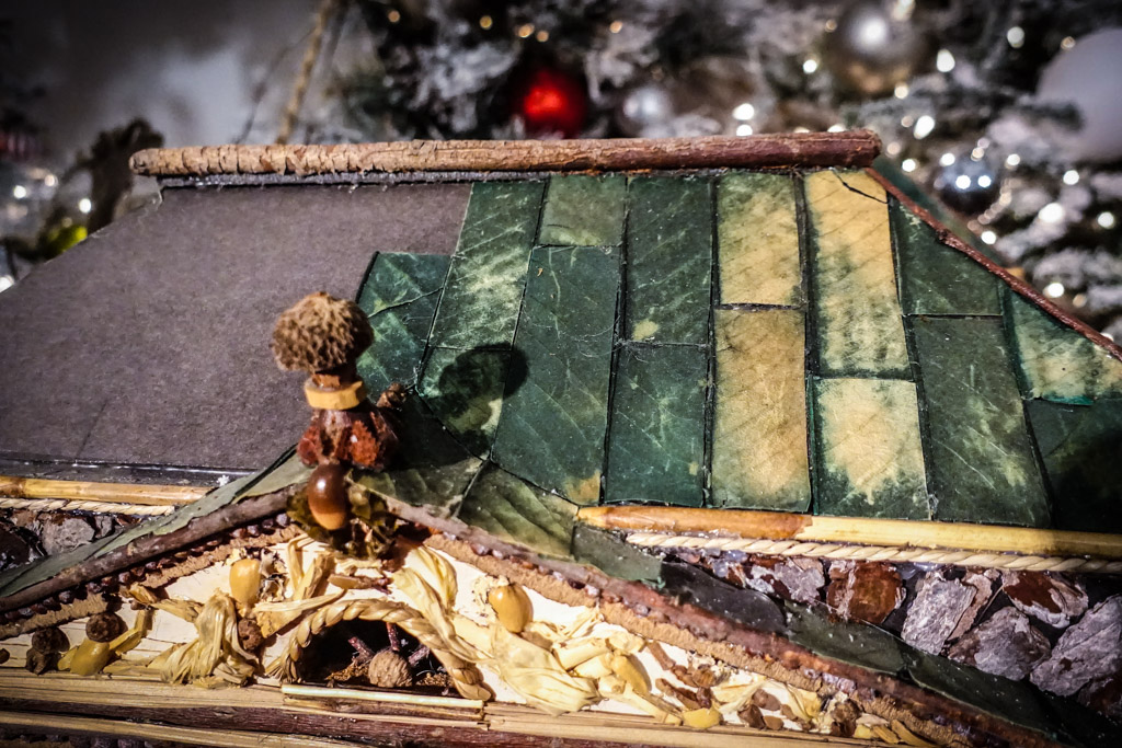 14. Нарезанные листья играют роль медной крыши. Жёлуди, орехи, и прочие семена составляют украшения для фасада.