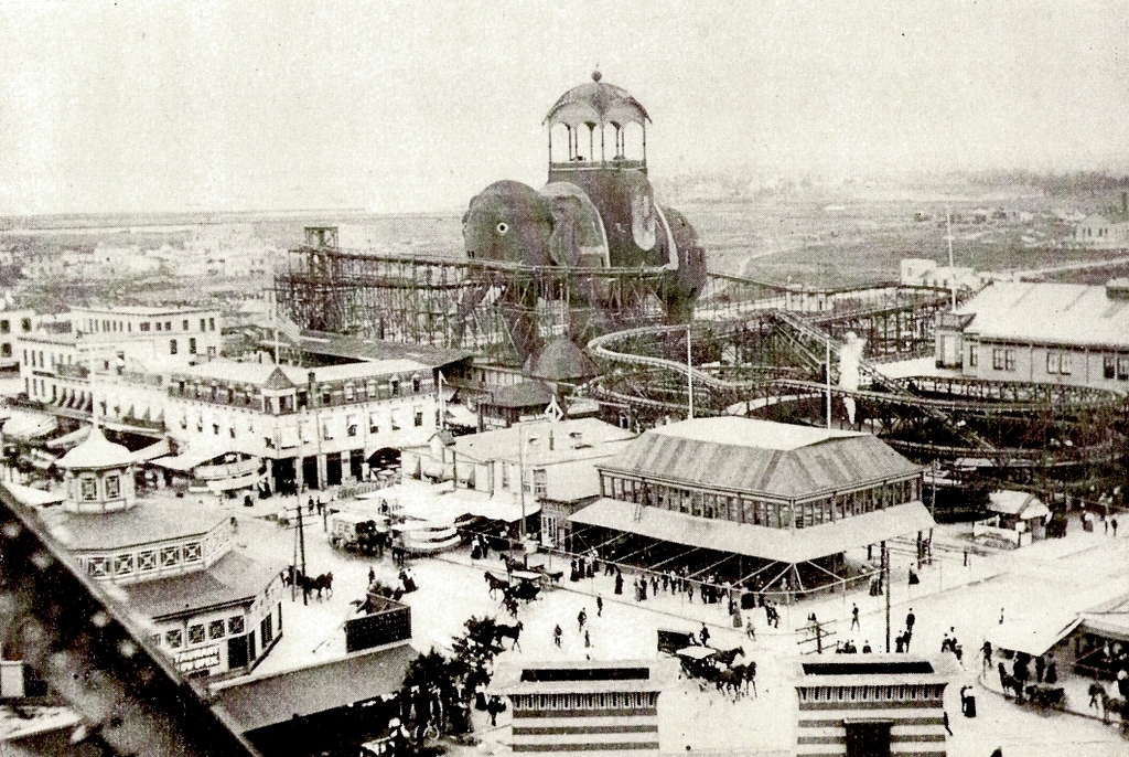 24. Циклон может быть до сих пор стоит на Кони Айленде, а вот Колоссальный Слон давно пропал.