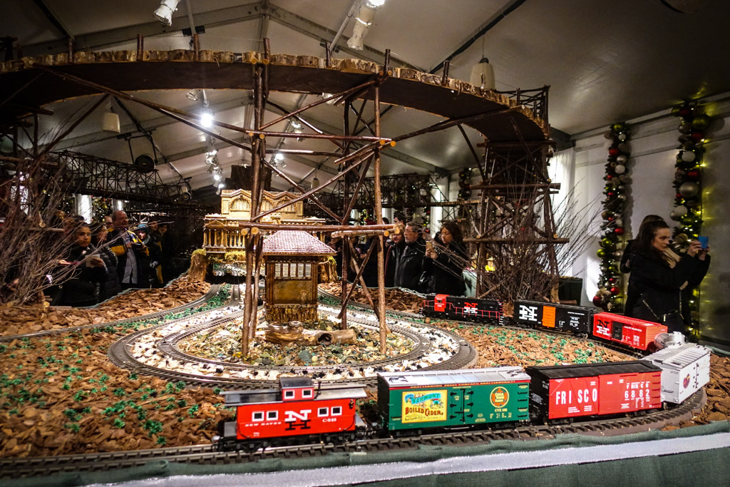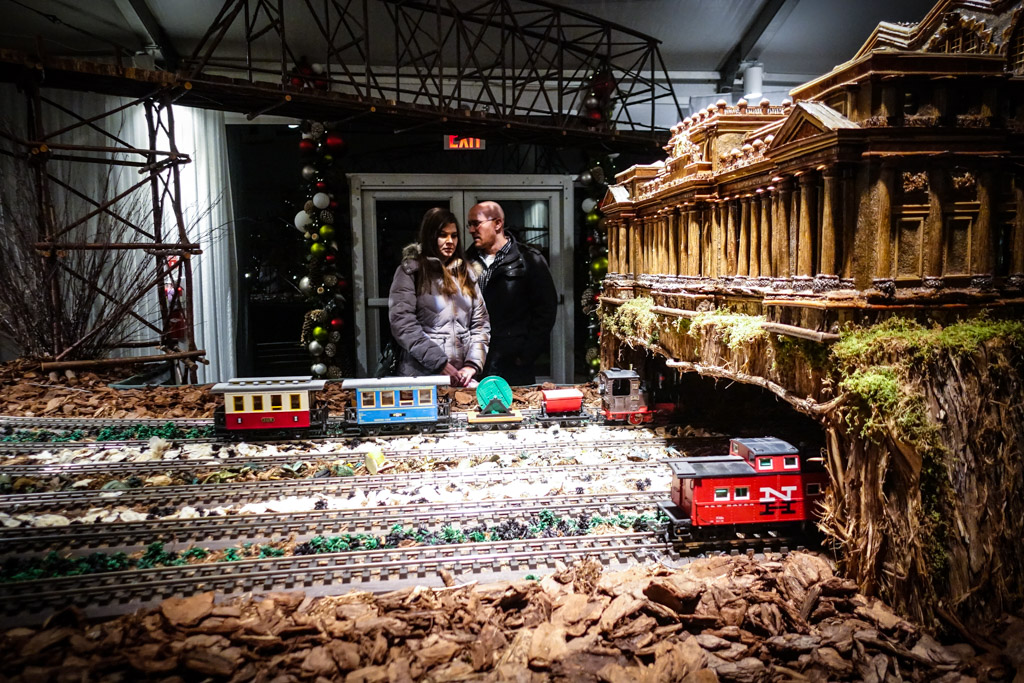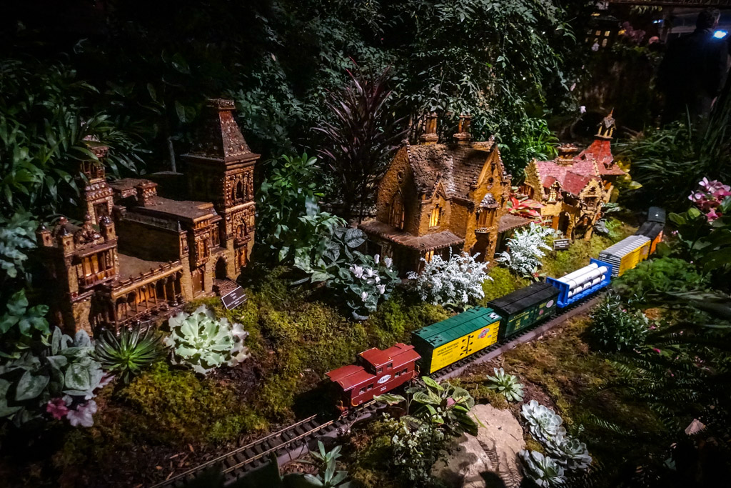 Тут Тоня на прошлой неделе сделала мне сюрприз: зная мою любовь к всему железнодорожному, она сводила меня на ежегодную праздничную выставку поездов (Holiday Train Show), которая проходит в нью-йоркском Ботаническом Саду уже много лет. При этом я никогда раньше о таком мероприятии не слышал, а куда конкретно мы идём Тоня мне не сказала. Так что я не знал, что ожидать, пока мы не зашли в выставочный зал.