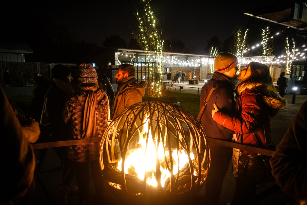 4. На одном из пятачков в уличном камине горел огонь, вокруг которого грелись посетители парка - температура приближалась к нулю.