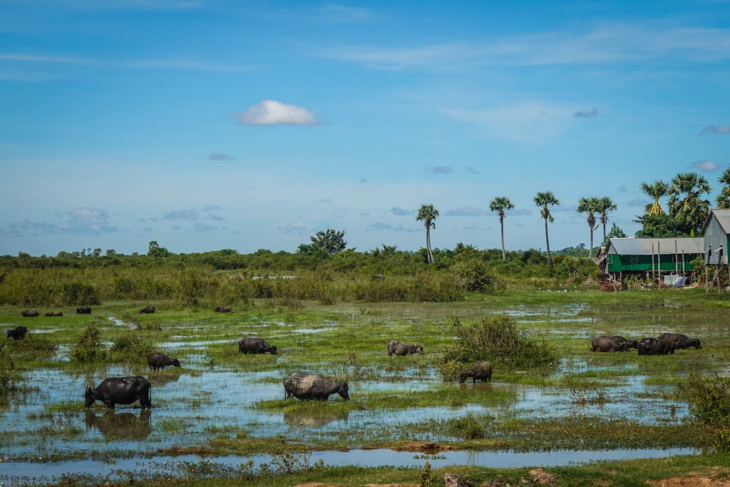36. А вот пастбище буйволов, которые не прочь прохладиться по колено в воде в жаркий камбоджийский день.