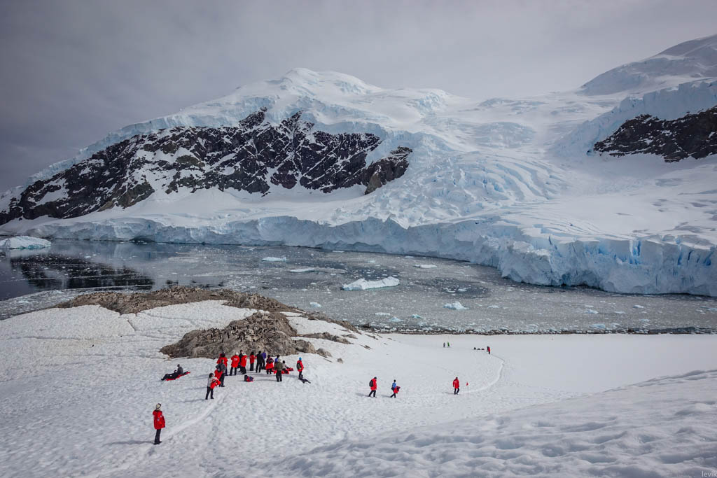 10. Ни один визит в Антарктиду нельзя считать полноценным, если вы не высадились на сам континент. Это не так легко сделать - практически вся кромка суши покрыта огромными ледниками и отвесными скалами. Однако, одну высадку нам всё же удалось осуществить - это было в Neko Harbour, обязательнй гвоздь программы, где пассажиры могут наконец наступить на обще-признаную поверхнось южного материка.