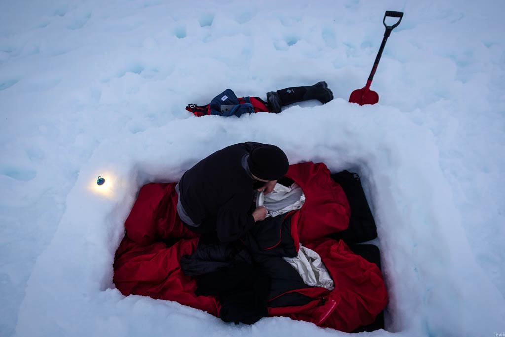 12. Нам даже посчастливилось провести одну ночь на снегу и льду, в спальниках, и под открытым небом! Для этого нам пришлось вырыть в снегу небольшую ямку, в которой мы ночью укрывались от холодного антарктического ветра.