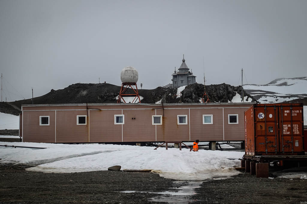 9. А вот на российскую станцию имени Беллинсгаузена нам разрешили высадиться, и мы даже смогли пообщаться с местным командиром. Кстати, на этой стации с 2003 года работает православная церковь, первая во всей Антарктиде. Подробнее о станции Белинсгаузен я написал в отдельном посте.