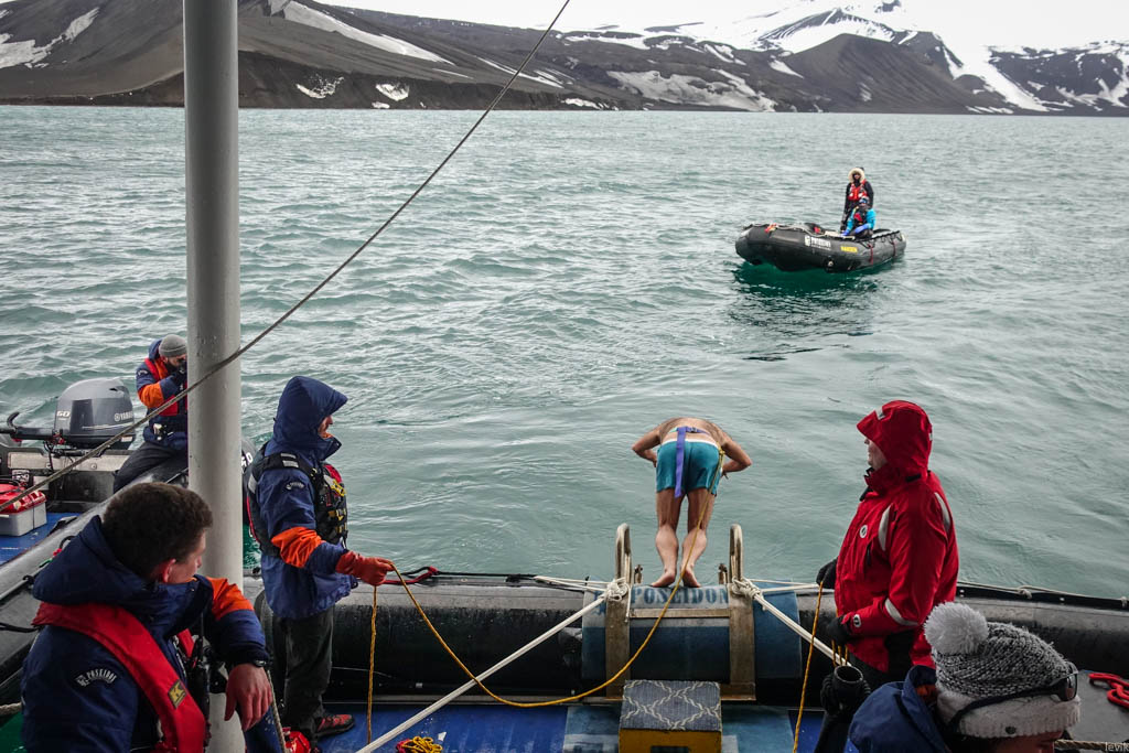 13. И, раз уже зашла речь о контакте со льдом, похвастаюсь вам прекрасным окунанием в антарктические воды, которое прошло у нас в первый день 2018. Говорят, температура воды здесь примерно минус 1.8 градусов по Цельсию (у солёной воды температура замерзания ниже нуля).