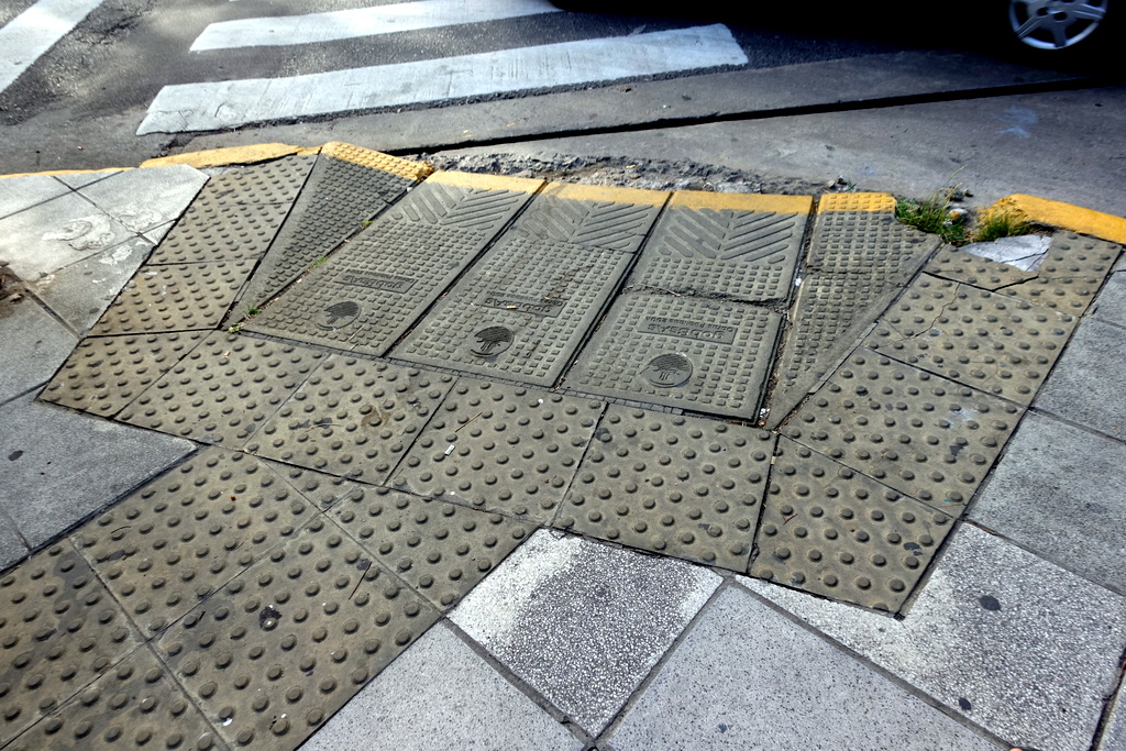 5. Да что там на углу! Просто когда идёшь по улице, тактильность плитки меняется после каждого пройденного здания. Очевидно здесь, как и в Панаме, хозяева недвижимости отвечают за тротуар перед своими фасадами, и каждый из них сам выбирает, какой плиткой его мостить.