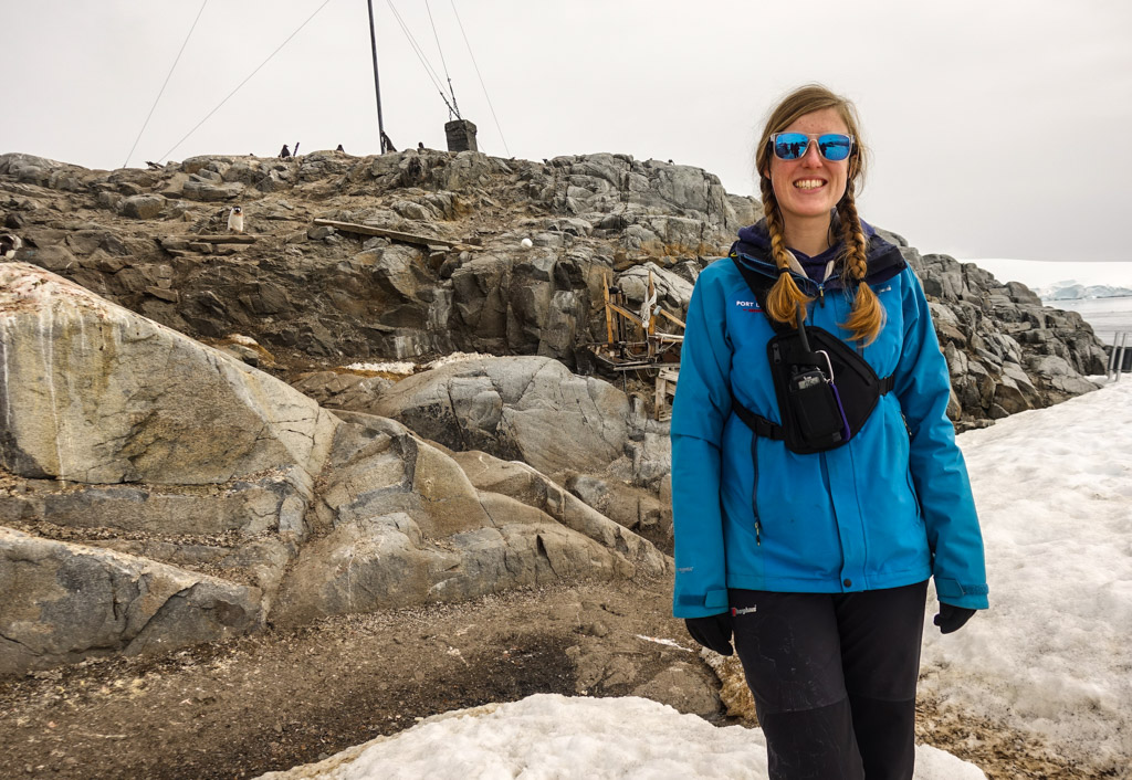 25. Это София, она одна из счастливых обитательниц базы в этом году. Каждый сезон Фонд Антарктического Наследия проводит отбор кандидатур, выбирая четырёх человек, которые проведут несколько месяцев в Порт Локрое. Большинство из них это девушки, которые раньше работали в каких-то других профессиях, но решили резко что-то поменять в своей жизни. В обязанности персонала базы входит поддержка музея и магазина, работа в почтовом отделении, лекции приезжим туристам, и надзор за популяциями местных пингвинов.