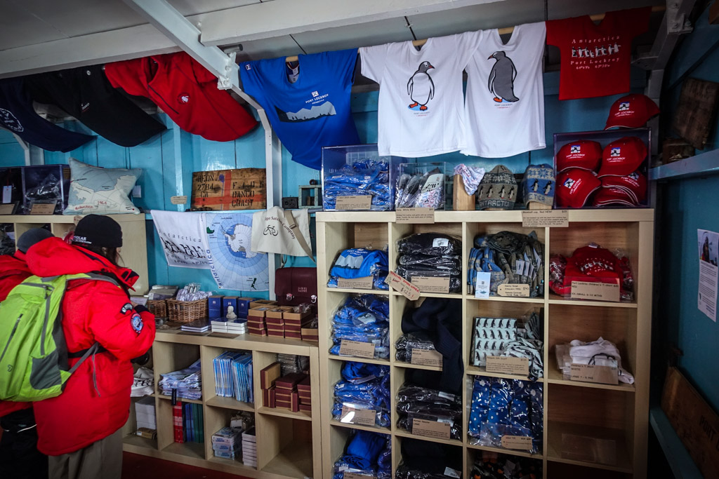 4. Внутри находится сувенирная лавка. Здесь продают различные безделушки, футболки, кепки, и прочее. Если вы из тех, кто любит приобретать сувениры, то привезти что-то антарктическое близким наверное особенно круто. Здесь даже принимают кредитные карточки! (Цены в магазинчике довольно высокие, но в конце-концов, это же Антарктида, тут вообще недёшево!)