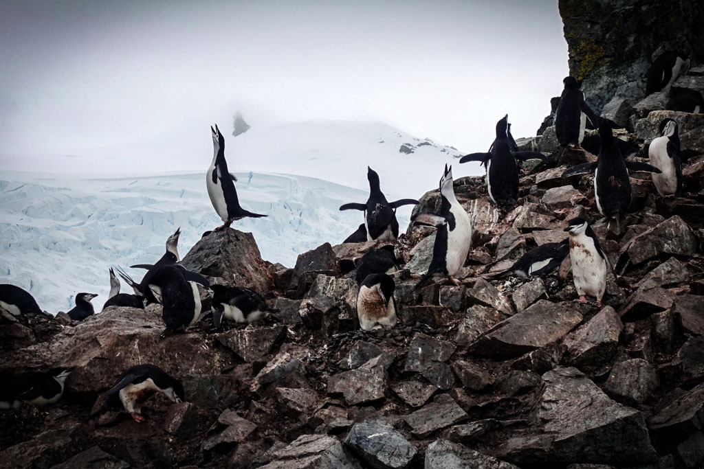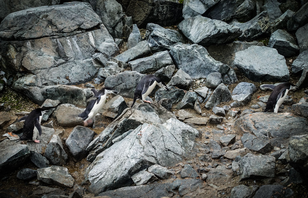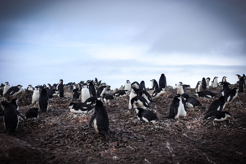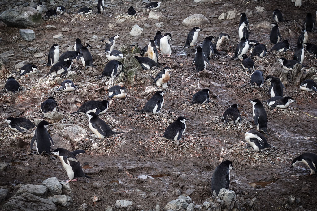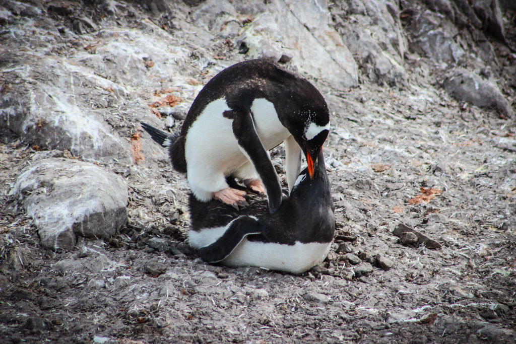 В этих колониях они строят гнёзда из камушков, и высиживают своё потомство. Есть несколько видов пингвинов, которые гнёзд не строят (это королевские и императорские пингвины), но мы их не видели. Папуанские пингвины (по-английски - Gentoo), которые попадались нам в самом большом количестве, ещё как строят гнёзда.
