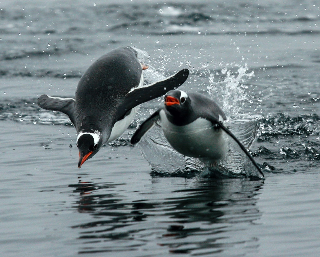 4. Успеть их сфотографировать в эту долю секунды нелегко, так что я взял фотографию из Википедии, чтоб показать вам как это выглядит. За миллионы лет эволюции пингвины потеряли возможность летать, их крылья сегодня более похожи на рыбьи плавники. Однако дышать им до сих пор надо воздухом, так что приходится выныривать. Правда в этих прыжках они как будто парят над поверхностью воды - в такие моменты легко забыть, что они нелетающие.