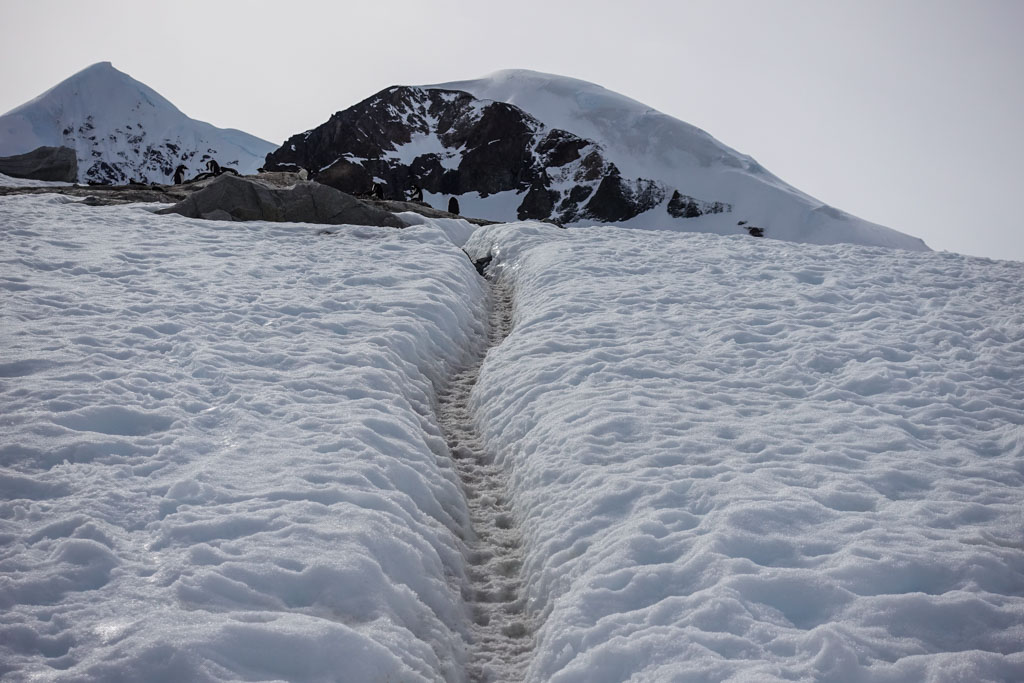 9. Эти тропинки соединяют пингвиньи колонии на возвышенностях с кромкой воды, куда они должны ходить за пищей.