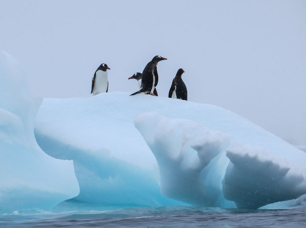 2. Итак, вот они, пингвины Антарктиды. Лучше всего они смотрятся на голубоватых льдинах айсбергов. Чёрно-белое оперение отлично контрастирует с окружающей средой. Когда видишь их вот так, сидящих на плавающей глыбе, это очень гармонично смотрится. Тут неволей начинаешь думать, что вот, наконец то я попал в красивый документальный фильм о полярной природе - не зря платил такие огромные деньги за эту экскурсию!