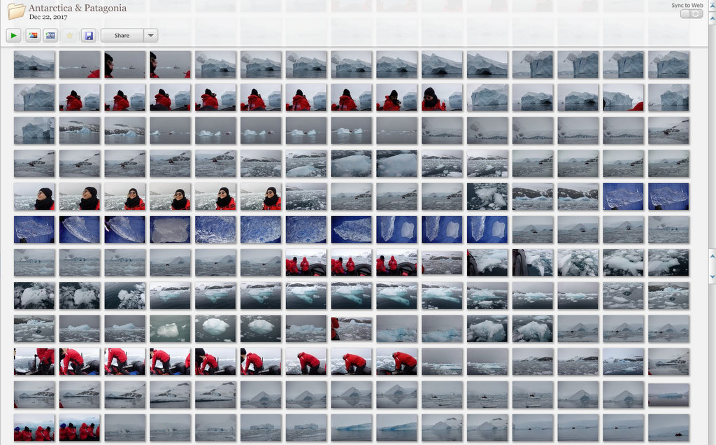 Открываю нужную папку, и быстро прокручиваю стену эскизов (иконок? как правильно по-русски сказать "thumbnail"?) Я помню, что фотография была сделана на одном из островов ближе к началу нашего плавания в Антарктических водах.