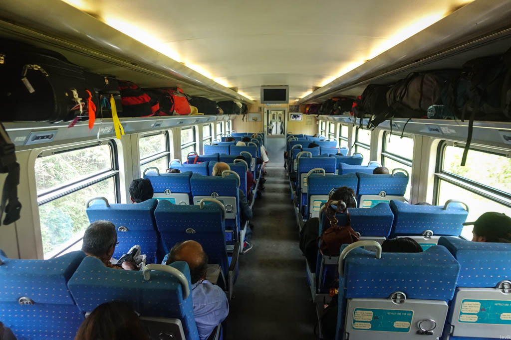 31. Я с дуру взял место в кондиционируемом первом классе. (Потому что этот билет стоил всего $10.) Не делайте как я - первый класс неприятный, потому что в нём не открываются окна. Почти всю дорогу я проехал в тамбуре, где было по открытой двери с каждой стороны, и можно было выглядывать в обе стороны, когда мы проезжали что-то красивое.