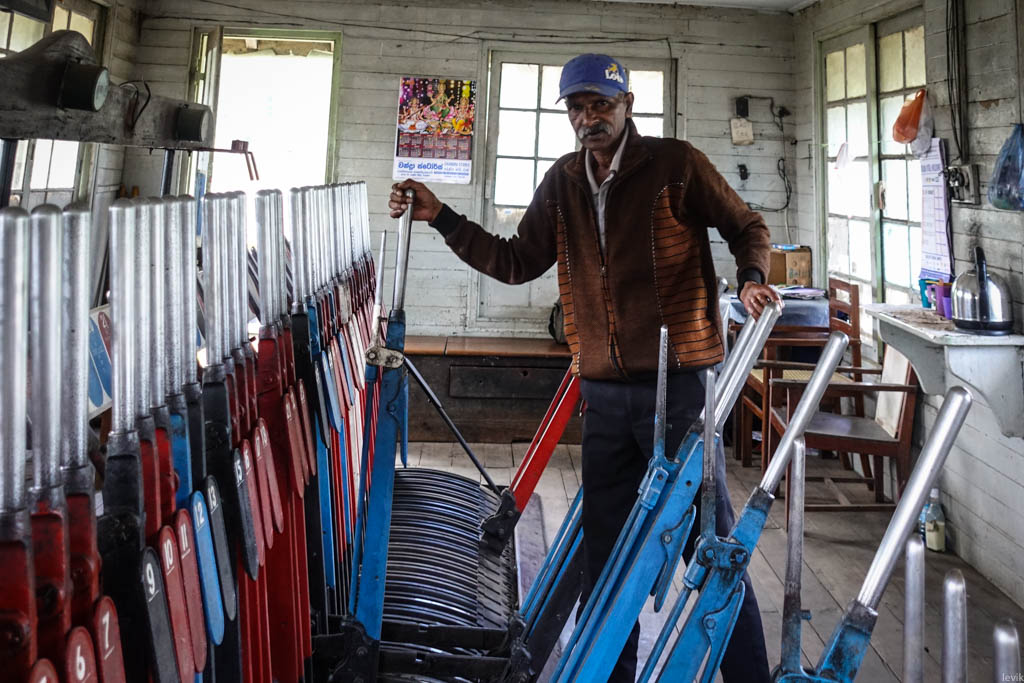 27. Только я поднялся на платформу, подходит ко мне какой-то мужичок. "Хочешь," говорит, "посмотреть, как все эти стрелки работают? Пошли со мной!" Мы поднялись в контролёрскую будку - двухэтажное здание на 25й фотографии - мужик открыл дверь огромным ключом и гордо показал мне огромное количество рычагов.