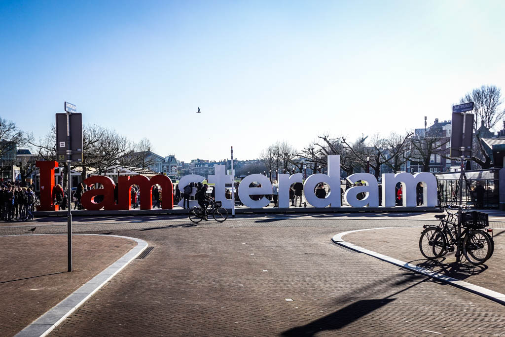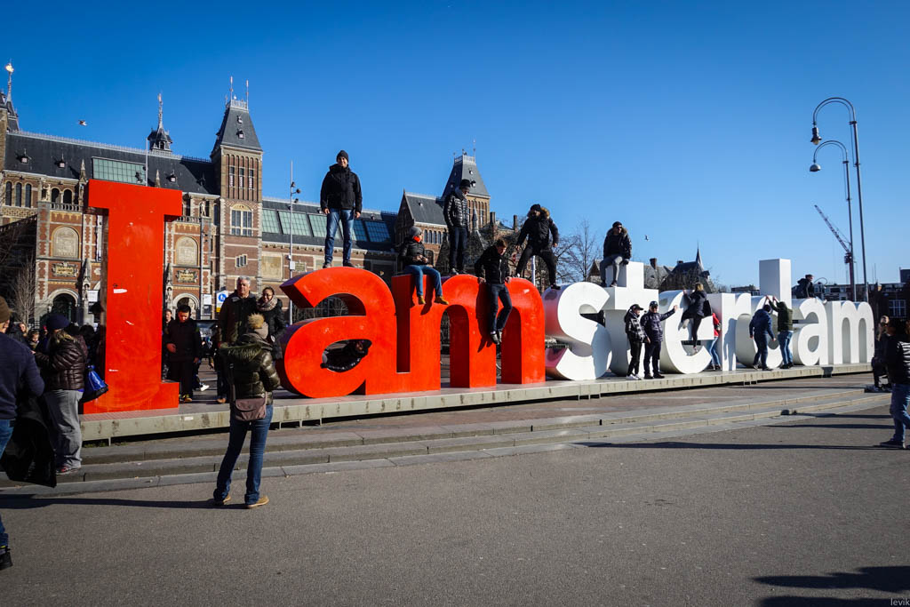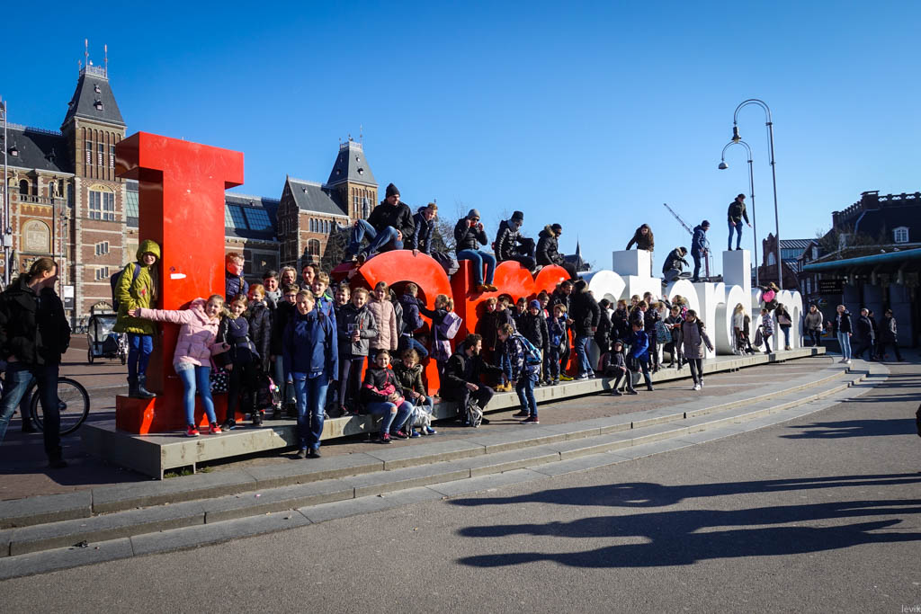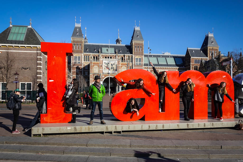 28. На музейной площади, перед Королевским Музеем стоит надпись "I amsterdam", возле которой все фотографируются. Сделать фоточку её без толпы народу посреди дня очень трудно.