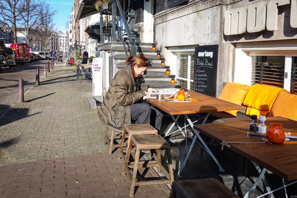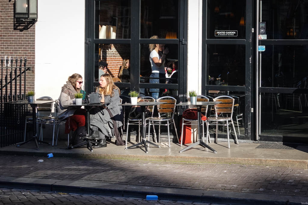 13. ...А кто - с друзьями на кофе. Жители Амстердама не боятся февральского холода.
