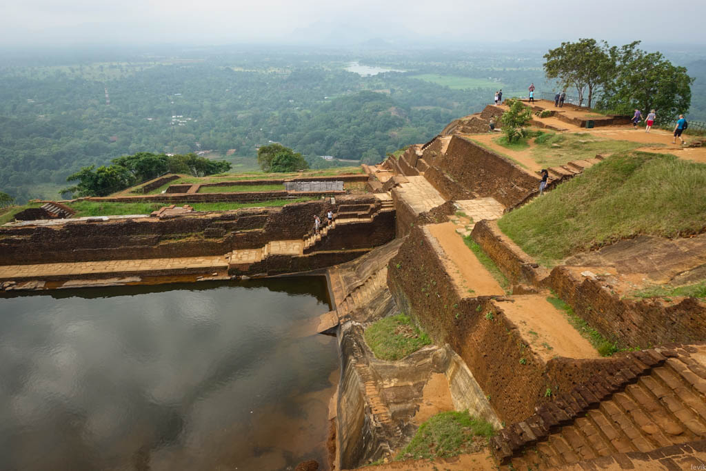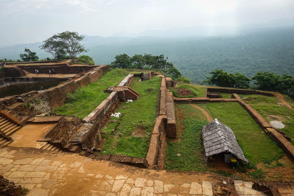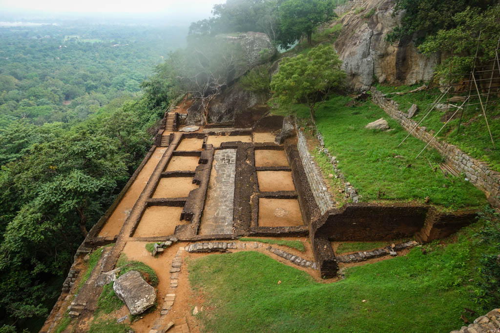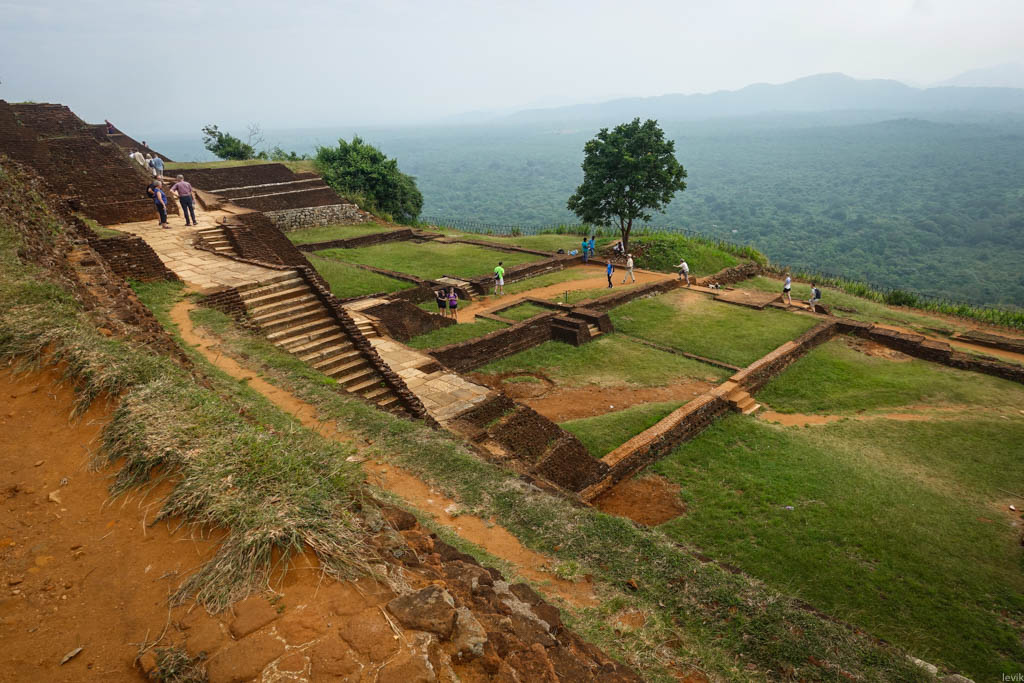 31. Не раз слышал, что Сигирия напоминает чем-то Мачу-Пикчу в Перу. Какое-то сходство конечно есть - это те же многоярусные прямоугольные трассы, покрытые ярко-зелёной травой. Но если перуанский город теряется среди окружающих его гор, то Сигирия возвышается посреди огромной равнины.