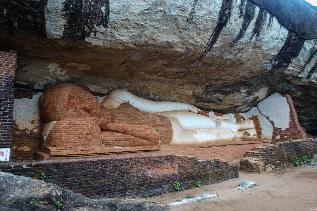 9. Тропа обвивает скалу сзади. На пути встречается большая фигура спящего Будды, сложенная из кирпичей. Таких вообще в Шри-Ланке немало.