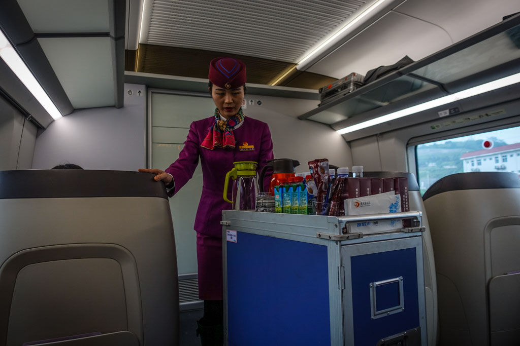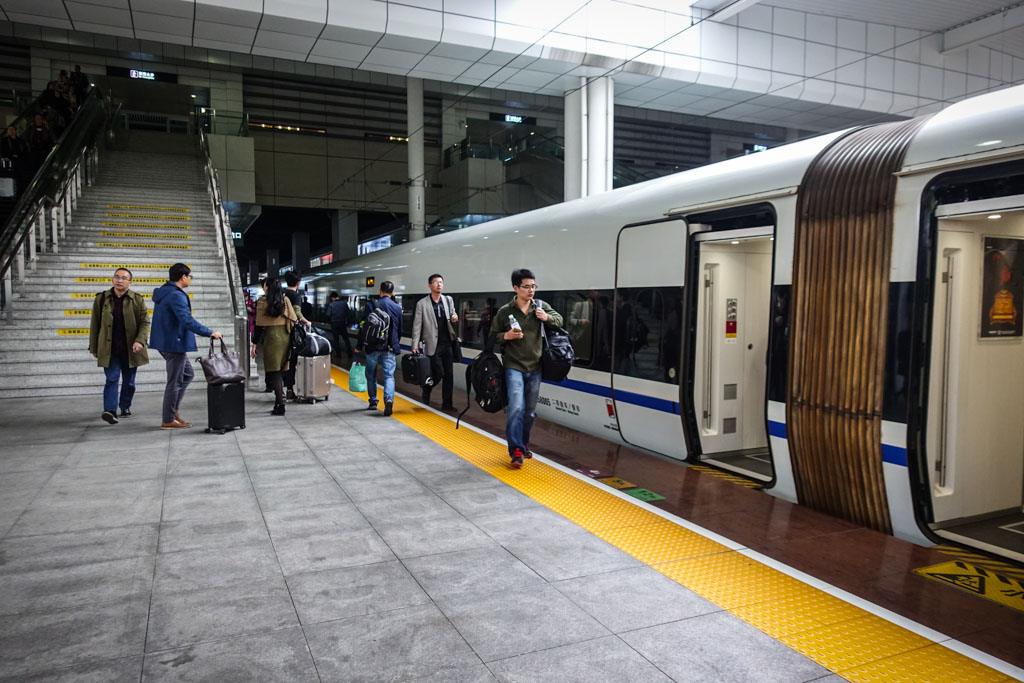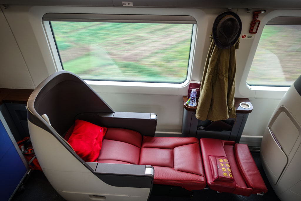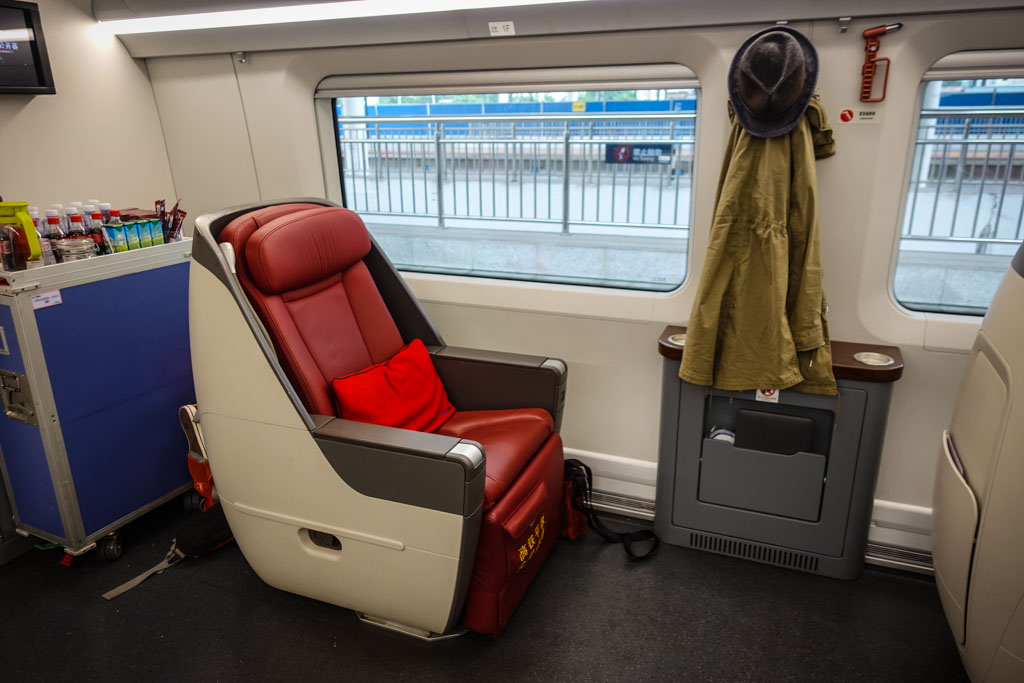 Расстояние между двумя городами около 400км, это хорошие четыре часа на машине, но скоростной поезд покрывает дистанцию примерно за полтора. При этом билет во втором классе стоит около $25, в первом классе - $40, а в бизнес-классе $80! Да, в китайских поездах бизнес-класс считается лучше первого, в отличии от большинства авиалиний, где международный первый класс это самый пик роскоши)!