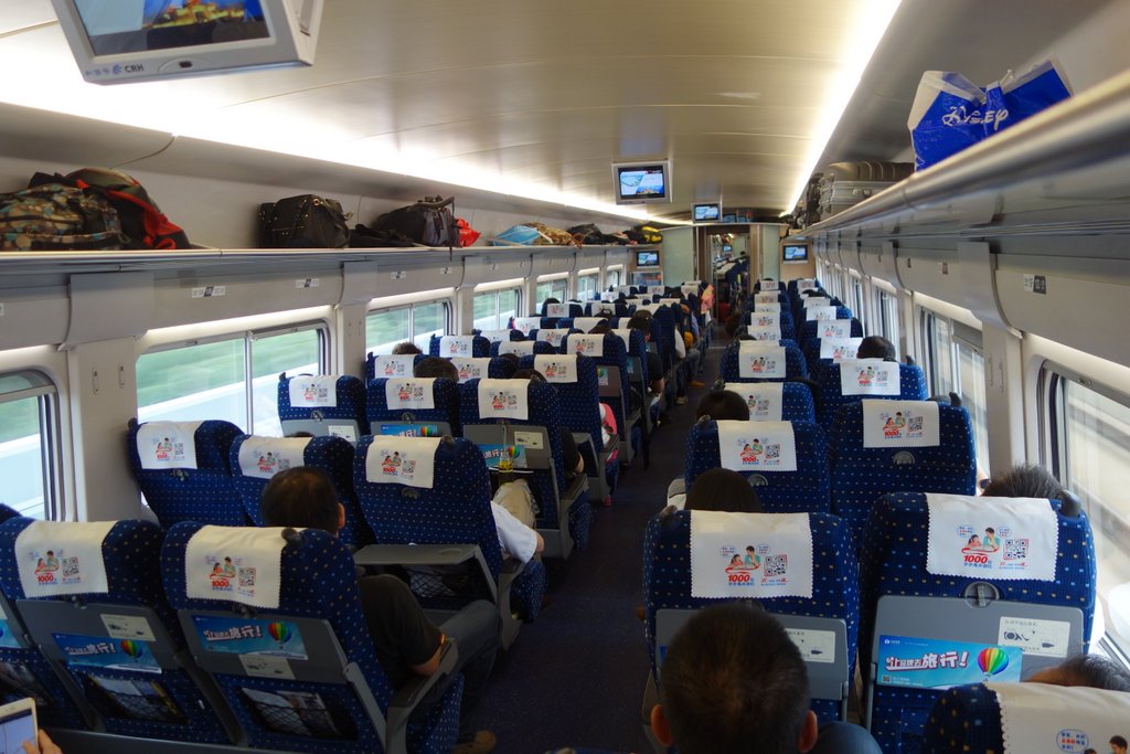 11. Обыкновенные вагоны в таком поезде выглядят вот так - примерно похоже на обыкновенный эконом-класс в нормальной авиалинии (впрочем тут гораздо просторней, чем салоны у некоторых европейцев).
