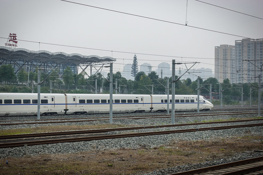 10. Напомню, что скоростные поезда в Китае выглядят вот так. Не знаю из-за чего, но их очертания гораздо менее красивые, чем у элегантных японских синкансэнов.