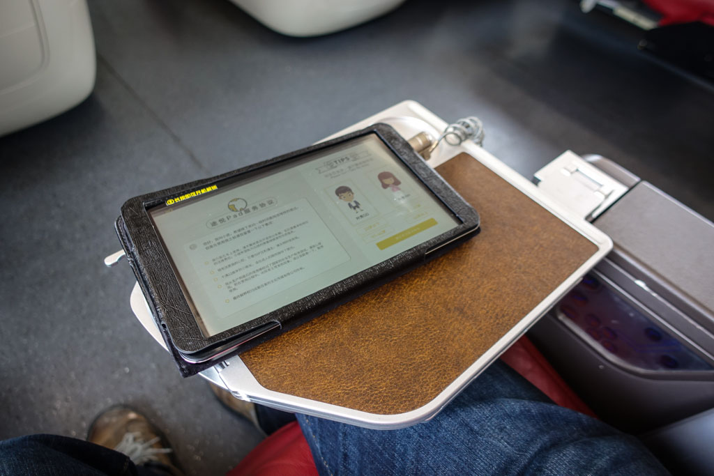 16. Из ручки кресла вытаскивается столик, а в кармашке у ног сидения лежит небольшой планшет. Это кажется вместо телевизора.