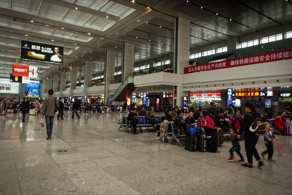 1. Любое железнодорожное путешествие начинается с вокзала. А вокзалы в Китайских городах монументальные. Это обязательно громадное здание со здоровыми буквами, и такая же здоровенная площадь перед ним. Просто подъехать к такому вокзалу не получится, даже если ты пассажир бизнес-класса. По любому придётся пересекать эту грёбанную площадь с чемоданом - это хорошие метров триста!